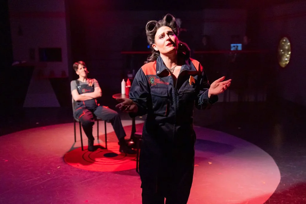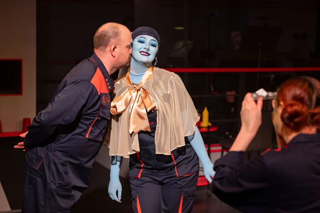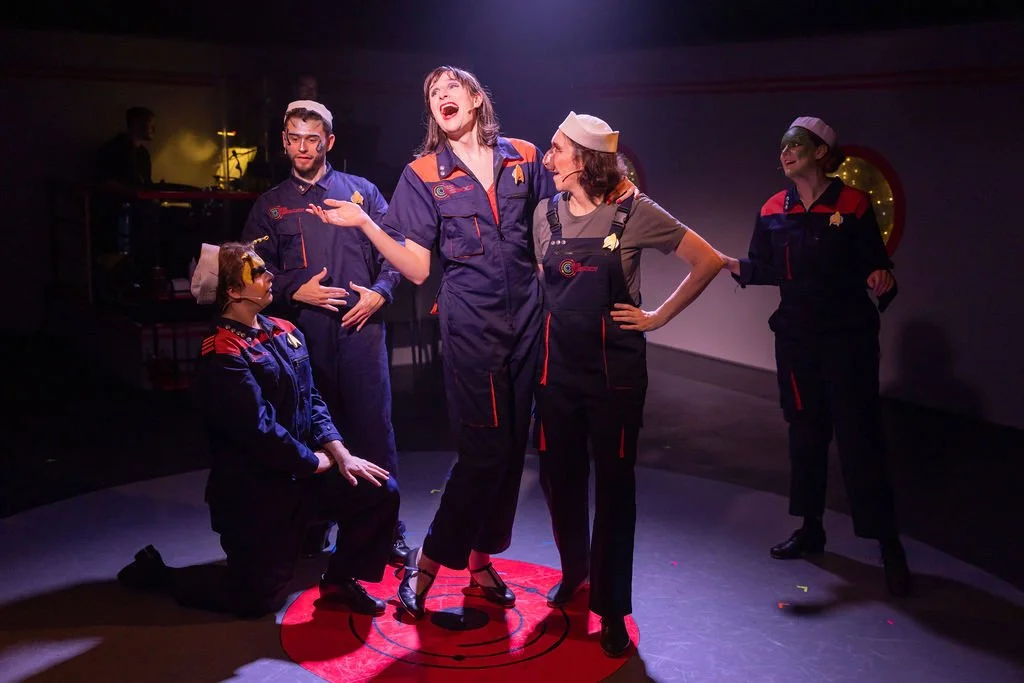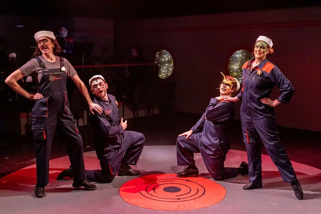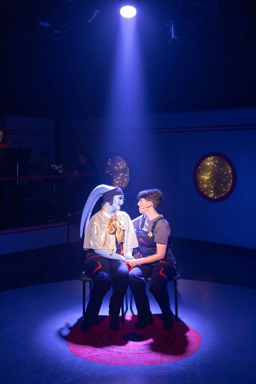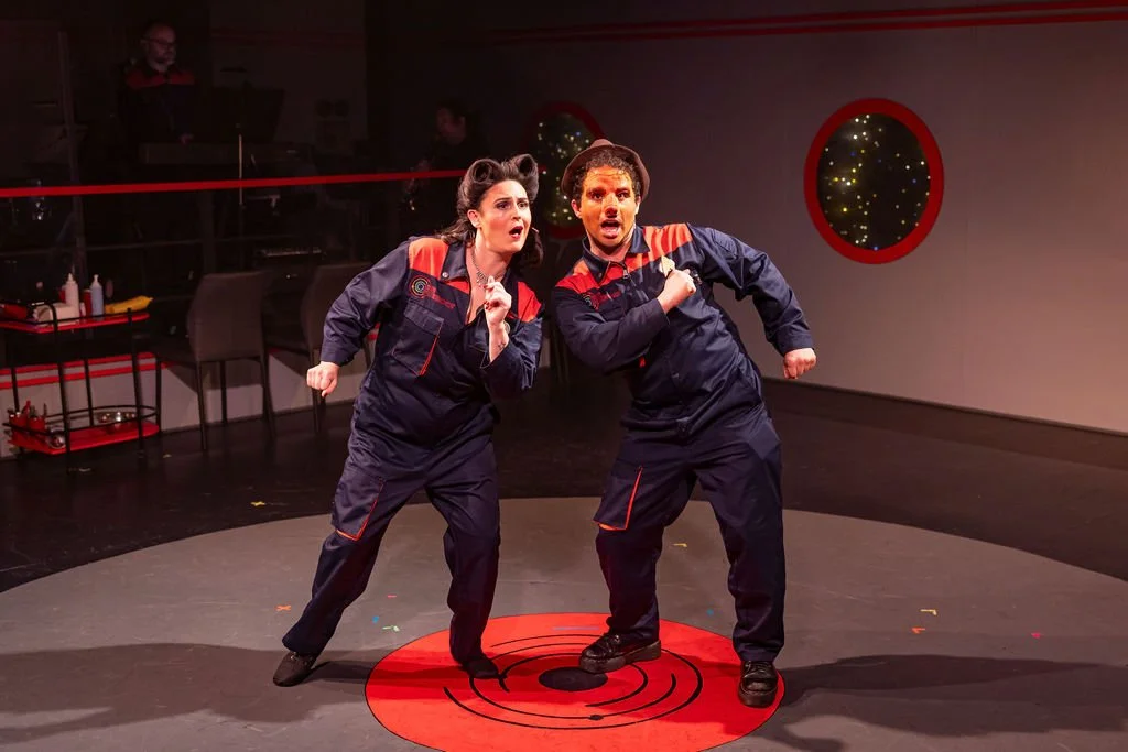 Production Team: HARRY TURPIN (Director/Choreographer), SAM PETERS (Music Director), VALERIE REID (Stage Manager), JACOB VIRAMONTES (Scenic/Lighting Designer), KALI POHLE (Costume/Makeup/Prosthetics Designer), JACK BATEMAN-IINO (Properties Designer), JAY JOHNSON (Sound Designer/Sound Engineer), COLIN MADISON, LANI SMITH (Dramaturgy), MIKE MESSENGER (Robot Wrangler), JOHNNY REVICKI (Production Manager), KATHRYN LEWIS, JARON BOGGS (Assistant Stage Managers), and ALYSSA MAAS (Intimacy Coordinator).